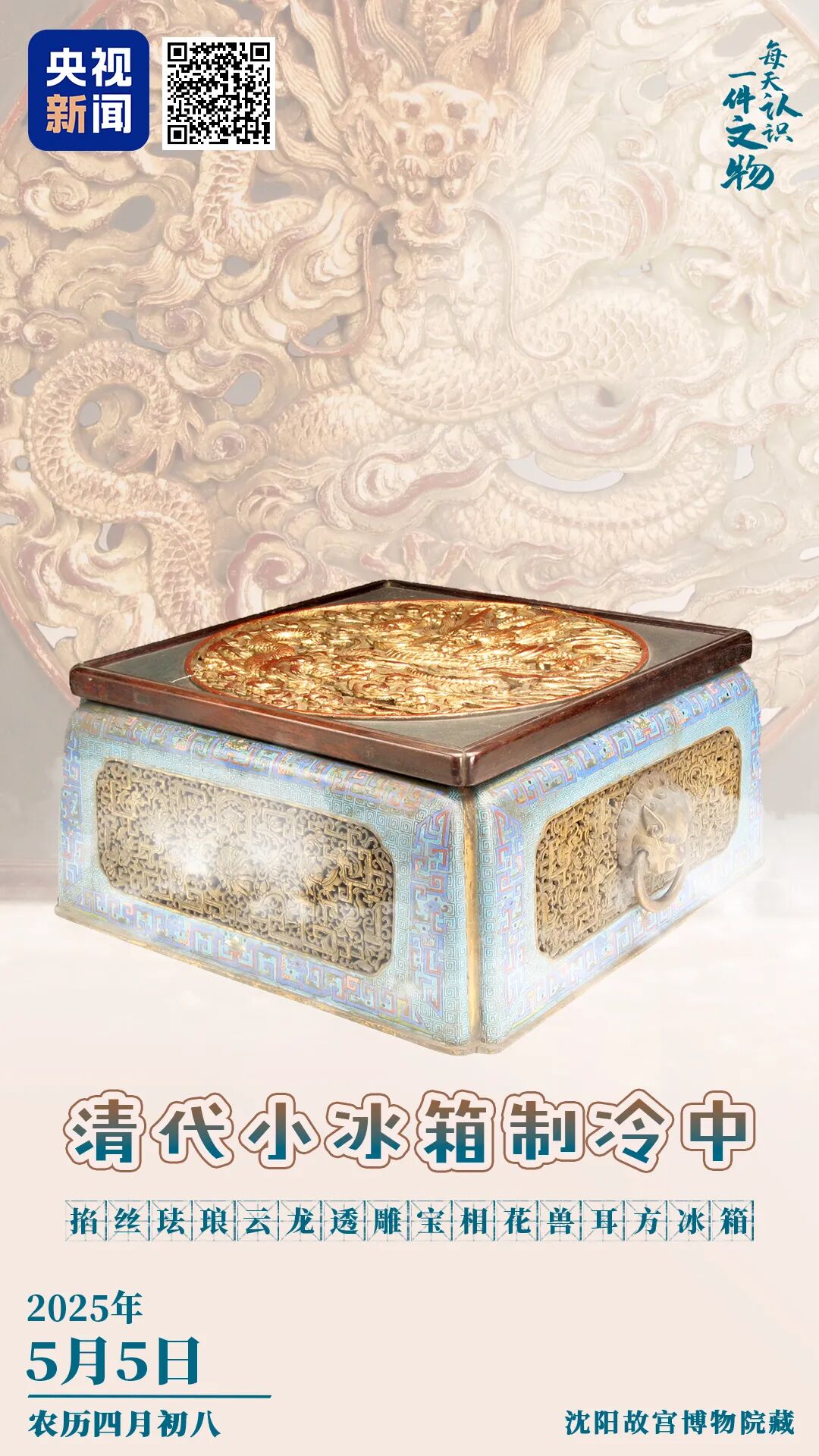 今日立夏 提起夏天 你脑海中的关键词是—— 绿荫蝉鸣、池畔荷香 还是更实在的空调冷饮大西瓜? 清代人回答: 美美度夏当然离不开冰箱啦! 01 制冷模式已开启 古人心爱的冰箱长啥样? 夏日最惬意的事情 莫过于来上一口甜滋滋、凉丝丝的 冰镇饮料 古人也十分赞同 并搬出了一件“制冷神器” 高颜值迷你冰箱 清 掐丝珐琅云龙透雕宝相花兽耳方冰箱 沈阳故宫博物院藏 掐丝珐琅云龙透雕宝相花兽耳方冰箱 这款冰箱的名称信息量极大 所有产品信息一目了然 形状款式:四四方方 外观样式:宝相花+兽耳提手+云龙顶 制造工艺:高难度的掐丝珐琅搭配透雕 中式美学直接拉满 小冰箱不仅外观精美 实用价值更是杠杠的 堪称绿色环保版的 “多功能消暑一体机” 掐丝珐琅云龙透雕宝相花兽耳方冰箱使用示意图 内部放上大量冰块 既能低温保鲜 冷气还可以从镂空处冒出 给室内带来丝丝清凉 一边喝冷饮一边吹冷气 这样过夏天别提多安逸了 02 不插电的冰箱如何运作? 古人有储冰妙招 古代没有电 冰箱的运作全靠内部放置的冰块 炎炎夏日,冰块从哪来? 《周礼》中早已给出答案 冬季取冰,藏之凌阴,为消暑之用。 古人早已get了冬冰夏用的 清凉妙招 “凌阴”就是古代用来藏冰的“冰窖” 汉长安城(西安)中的巨型皇宫藏冰遗址 在历代宫廷中都设有 负责采冰和储冰的专门机构 冬天把冰块储存到密封且阴凉的地窖中 避免空气进入 这样就可以保证冰块长时间不化 来年夏天再取出 用来给各种食物和饮品冰镇保鲜 还可以消暑降温 清凉一“夏”模式就此解锁 03 “避暑良方”来了 看古人如何度过炎炎夏日 冰箱之外 古人还有不少完美的度夏搭子 每一件都巧思满满 ↓下滑查收“避暑套餐”↓ 南宋 君玉团扇 镇江博物馆藏 消暑最简单的方式 不过一把小扇 一挥一摇 随时随地制造出一份自在的清凉 南宋 紫褐色罗印金彩绘花边单衣 中国丝绸博物馆藏 清爽透气又舒适的 高定夏装也必不可少 整身穿搭时髦吸睛 还能尽情感受微风的清凉 妙哉妙哉 北宋 磁州窑马戏图瓷枕 故宫博物院藏 古人夜晚就寝时也有纳凉好物 瓷枕 光洁细润、质坚清凉 弧面设计还符合人体工学 枕上它一定能在夏夜做个美梦 一件迷你冰箱 尽显古人对生活的精致追求 与代代相传的清凉智慧 今年夏天,你准备了哪些避暑神器?