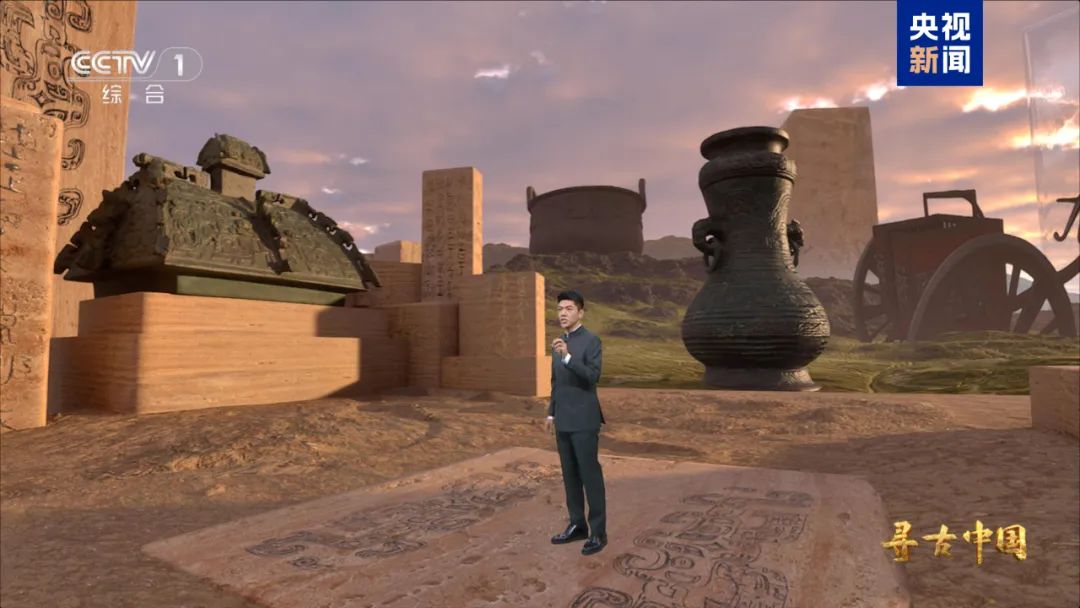 《寻古中国·寻周记》持续深化“思想+艺术+技术”融合创新,运用人工智能技术重现历史场景,对建筑遗址、青铜器、甲骨文等重要文物进行3D立体还原,让遗址、文物“活”起来;打造主持人沉浸式、互动性讲述场,与典型文物、文明元素、历史事件融合呈现,有机互动。