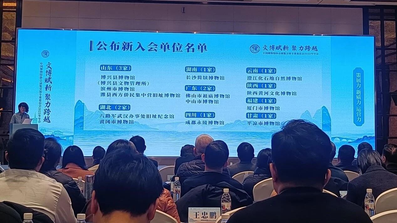 2026年1月15日,由中国博物馆协会指导,中国文物交流中心支持,中国博物馆协会展览交流专业委员会、杭州市临平区文化和广电旅游体育局(临平区文物局)主办,杭州市临平博物馆、玉架山考古博物馆承办的中国博物馆协会展览交流专业委员会2025年年会暨全体会议在杭州举办。滨州市博物馆作为新入会单位受邀参会。会上,展览交流专委会副主任委员罗利君代表专委会作2025年度工作报告,总结过去一年工作成果,会议公布了新入会单位名单并完成第四届常务委员会届中调整,选举孙小兵任专委会主任委员,随后孙小兵作《博观而约取 厚积而薄发——2023至2025年展览交流回顾与展望》专题报告。此次会议上,滨州市博物馆正式获批加入中国博物馆协会展览交流专业委员会(以下简称“展览交流专委会”),标志着本馆深度融入全国文博展览交流合作网络。